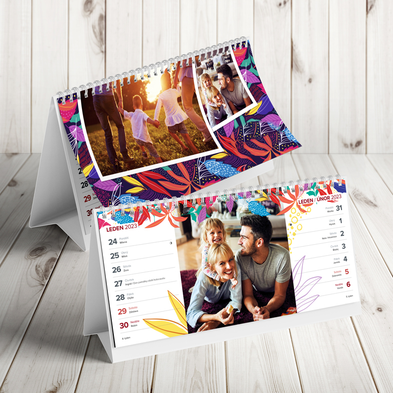 Rozměr: 310 x 145 mm Rozsah: 27 stran + titulní strana Materiál: 130g křída mat. Vazba: Twin wire (bílý drátěný kroužek) včetně stojánku pro postavení na stůl.