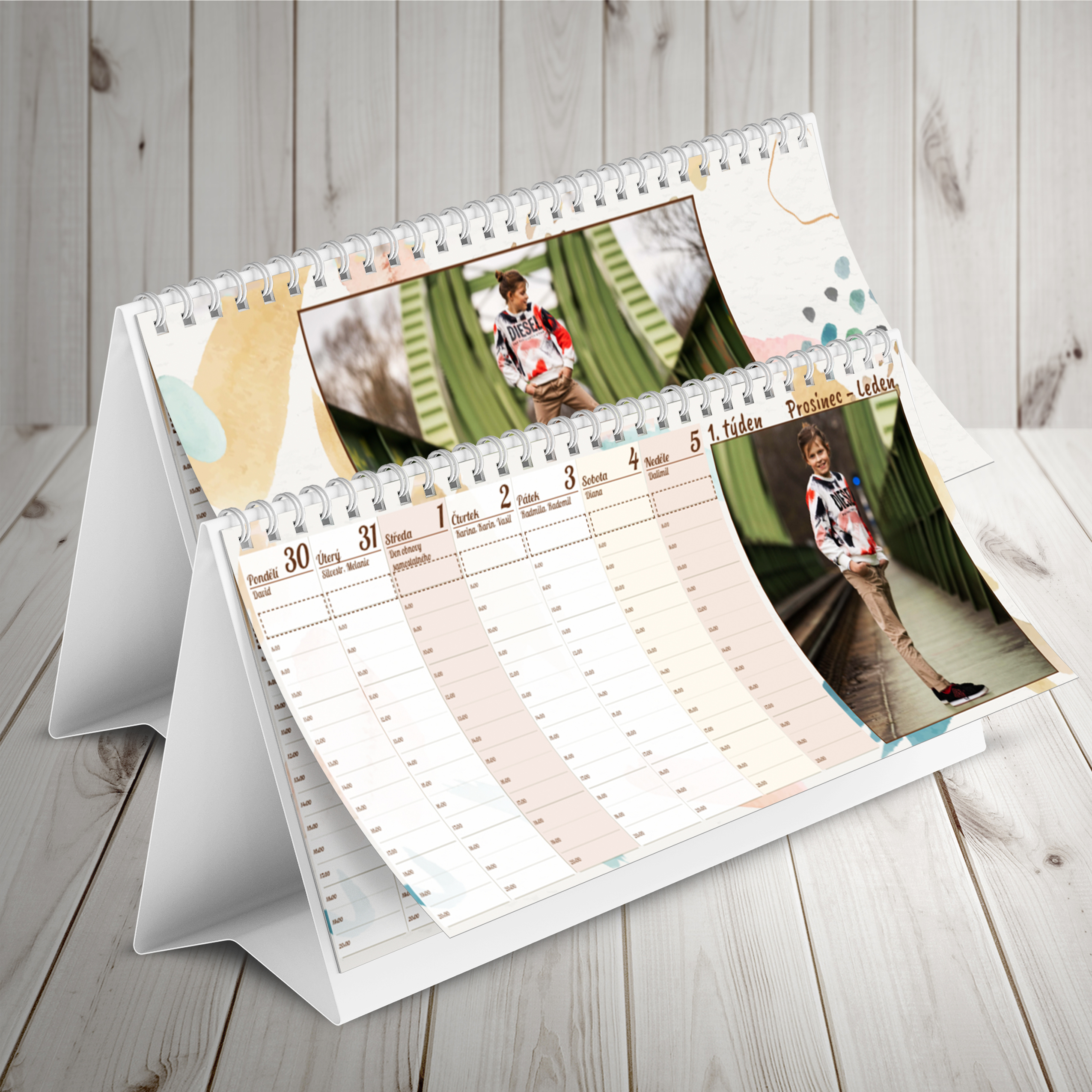 Twin wire (drátěný kroužek) včetně stojánku pro postavení na stůl.